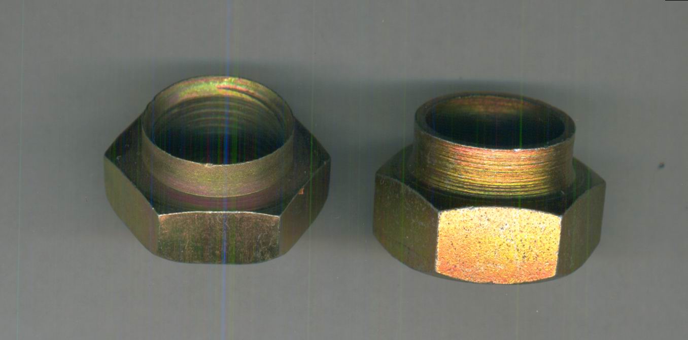 Настоящая выше, но длина резьбы внутри гаек одинаковая.