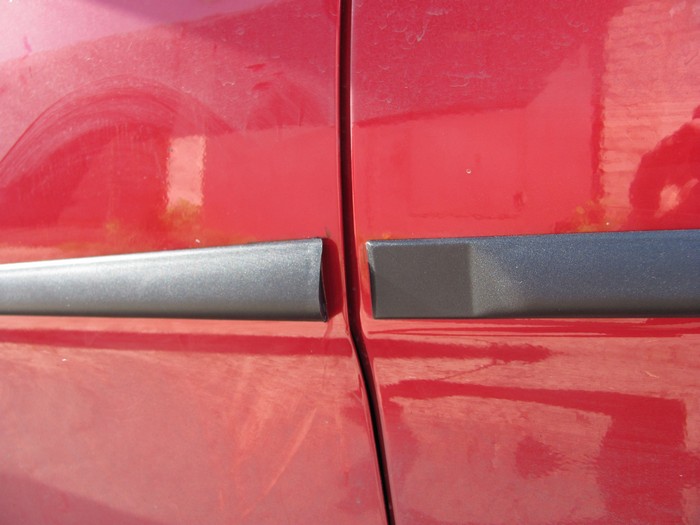 6. Поскольку на торцах молдингов передних дверей скотча нет, то стык между дверью и торцом загерметизировал силиконовым герметиком.