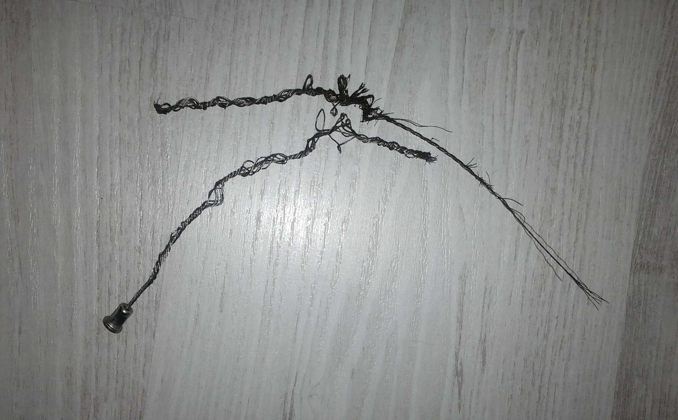 8. Методом тыка и натяжки подобрал необходимую длину троса (чем удобна пайка - можно заново нагреть заклепку и сдвинуть на определенное растояние)