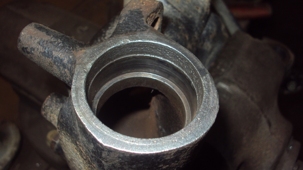 Теперь про уплотнители. Поверхность в рычаге замучена коррозией ужасно. Уплотнители ничего не уплотнят, их придётся ставить на герметик. Вообще, сюда напрашивается сальник 30х42х8, только стальную втулку преднатяга подшипников надо выточить цилиндрической формы, а не "т"-образной, как в оригинале. Но с сальником есть слабая сторона- площадь прилегания по месту вращения у него маленькая, а дорожной грязищи в этом узле предостаточно- сотрётся и воде с грязью обеспечен прямой путь в подшипники. Может, не случайно итальянцы поставили пыльник с такой широкой юбкой? Как думаете?
