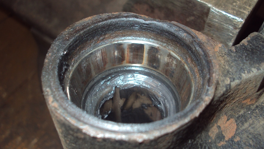 Теперь про уплотнители. Поверхность в рычаге замучена коррозией ужасно. Уплотнители ничего не уплотнят, их придётся ставить на герметик. Вообще, сюда напрашивается сальник 30х42х8, только стальную втулку преднатяга подшипников надо выточить цилиндрической формы, а не "т"-образной, как в оригинале. Но с сальником есть слабая сторона- площадь прилегания по месту вращения у него маленькая, а дорожной грязищи в этом узле предостаточно- сотрётся и воде с грязью обеспечен прямой путь в подшипники. Может, не случайно итальянцы поставили пыльник с такой широкой юбкой? Как думаете?