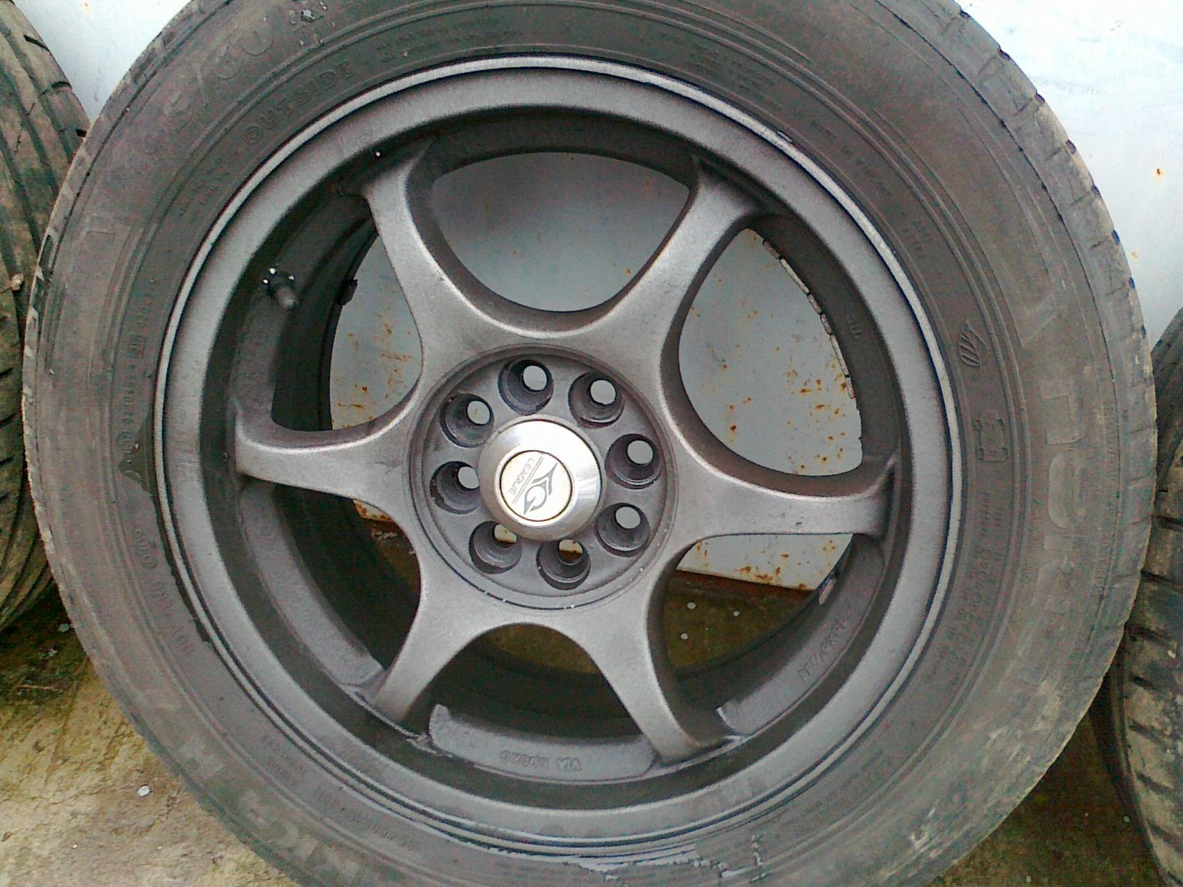 кольца на болты красные + резина Nokian Hakka H 195/60 R15 в хорошем состоянии, на одном боковой надрыв, но не до корда, все лето так и проездил с ним. Цена вопроса за все 3600 гривен