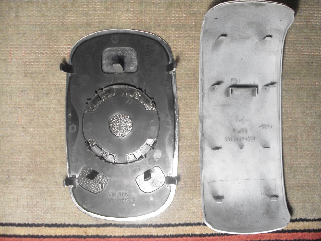 чтобы разобрать зеркало без последствий( чтобы не лопнуло стекло) нужно разобрать этот узел, освободить тросики. когда тросики свободны тогда можно отвёрткой подлезть к защёлкам они очень плотно сидят.стекло сдвигаешь как можно в край и видно защёлки.Накладку декоративную снимать не надо.
