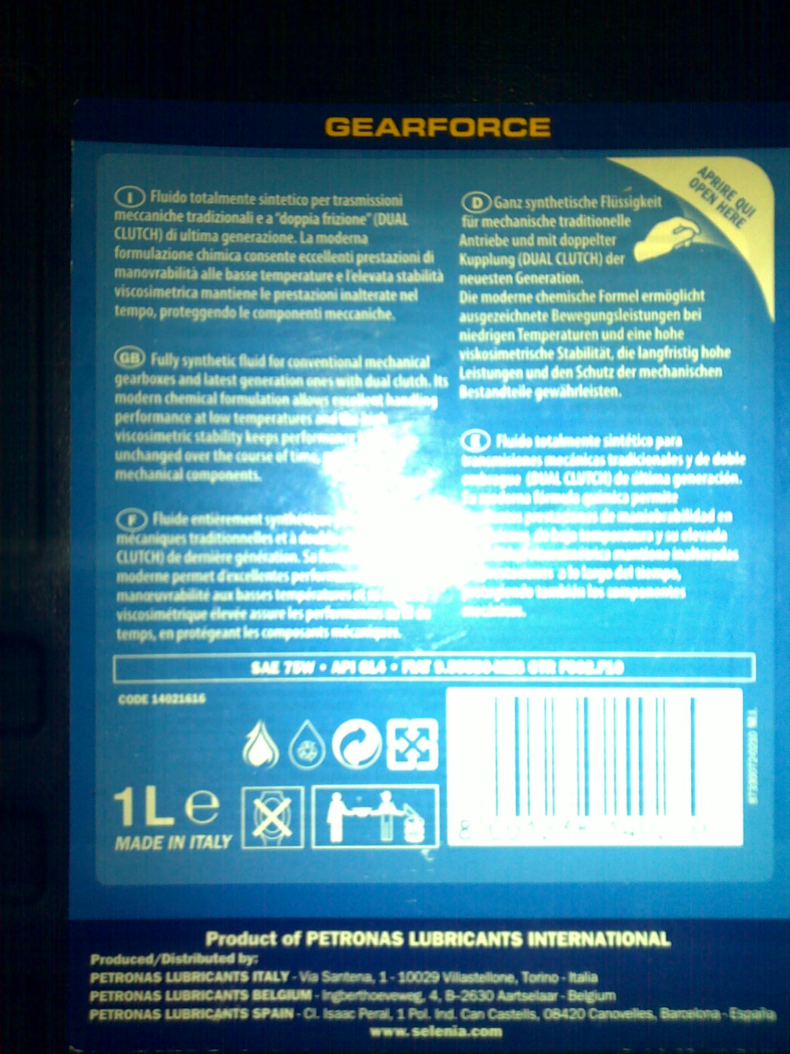 Сегодня заменил масло в коробке, слилось масло красноватого цвета, похожее на АТФ. Залил, то, что положено по мануалу Tutela transmission gearforce, код 14021616, цвет прозрачный светло коричневый Shocked . Как обычно, итальянцы залили то, что было под рукой Crazy Confused Blink