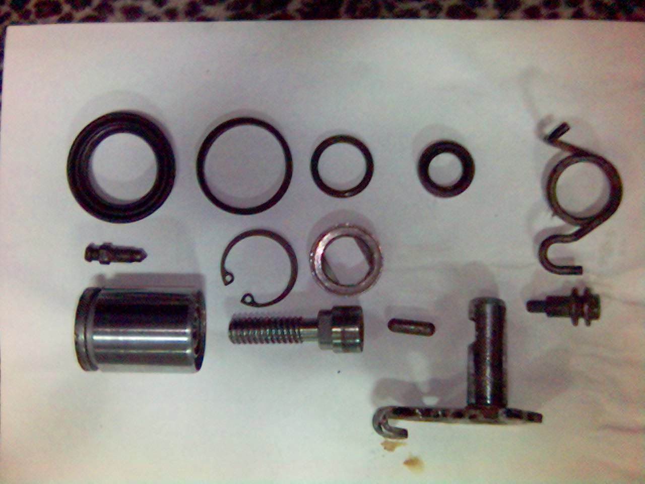 далее всё чиститься моется и собирается на новых резинках из ремкомплекта (пыльники направляющих, пыльник поршня, кольцо резиновое для поршня, кольцо резиновое для штока с резьбой, сальник привода ручника) и тормозной жидкости (что б скользили резинки и не сворачивались)
