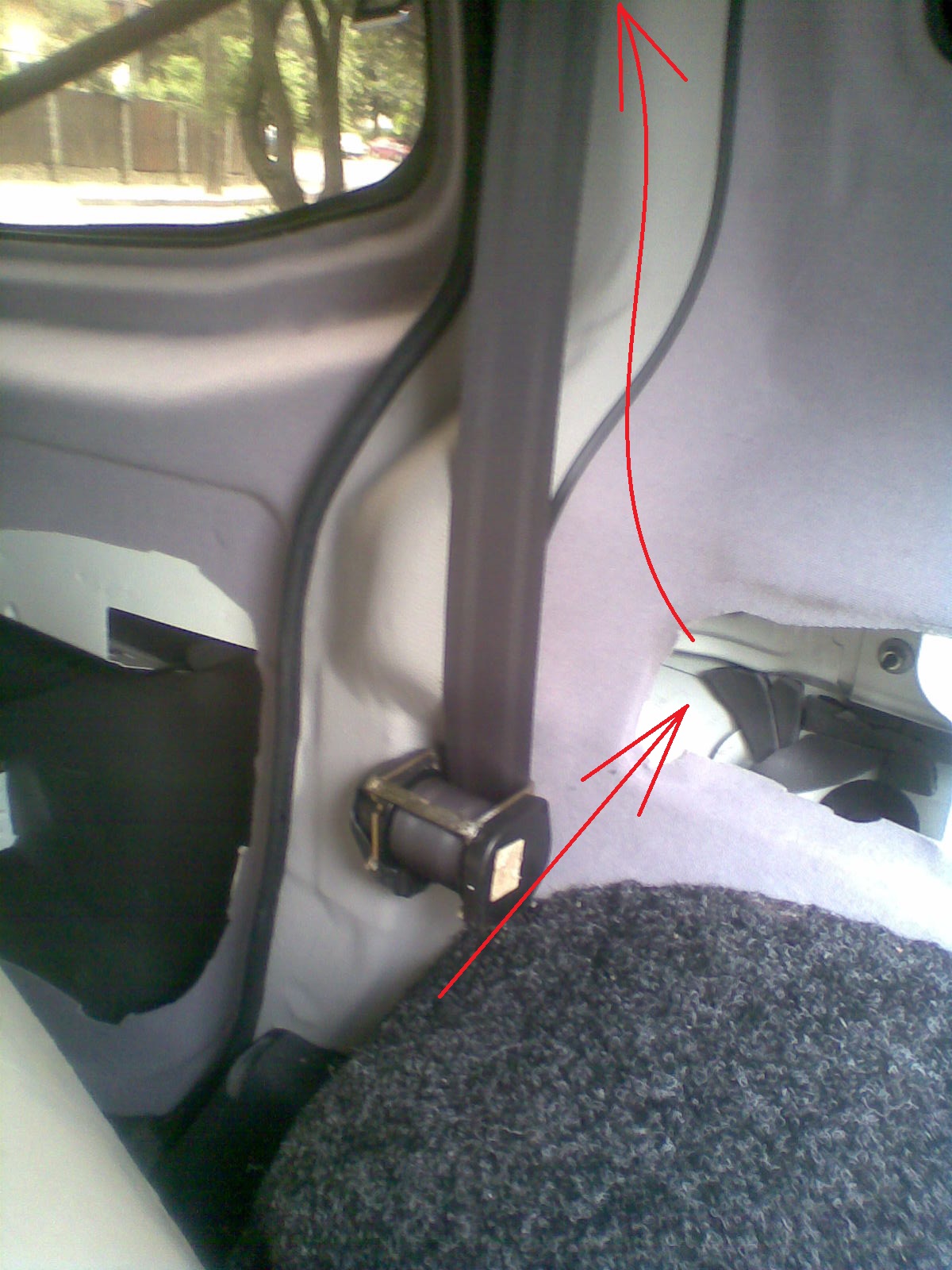 Пассажирская сторона- на стойке со стороны улицы есть резиновая заглушк 70х40мм(примерно) находится на 30-40см ниже отверстия в стойке- заводить будем через нее.