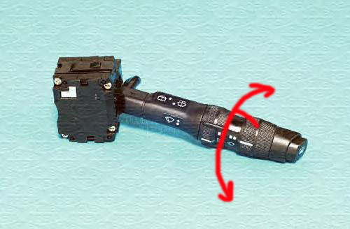 на ручці включення склоочистників є така "крутілка", так само як світло на ручці поворотів