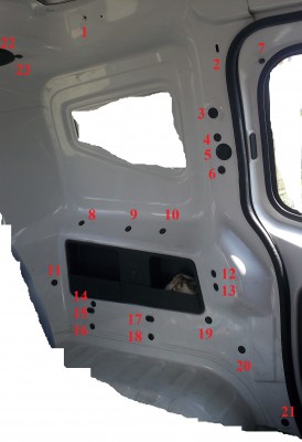 4-е под крепление ремня безопасности, маленькие под андапки родных обшивок, 11-е не знаю