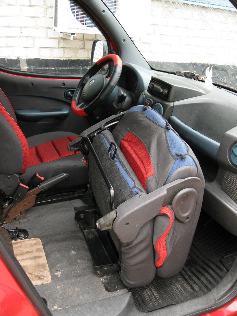 Я не знаю из каких таких соображений Фиат не делает передние откидывающиеся кресла еще и с регулировкой спинки. Думаю, что таки можно было бы это сделать. Но отношусь к этому философски - нельзя иметь все сразу. В целом кресло удобное. Я установил подголовник, так как были планы на дальний пробег. Все получилось. 800км пробега за 12 часов, жалоб от штурмана не поступало. И спала, и сопела. Задние пассажиры были в лучшем положении - там полные трансформеры. Но из-за массы шмоток сзади и эти кресла полностью не раскладывались. Все-таки карго - это грузовичек. Как не тужись, мерсом он не станет. Но меня сей факт не расстраивает. Laughing