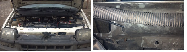 Капот, справа фиксатор, вторая часть фото под фиксатором (ничего нету), только тросик к замку капота, и патрубок к воздушному фильтру