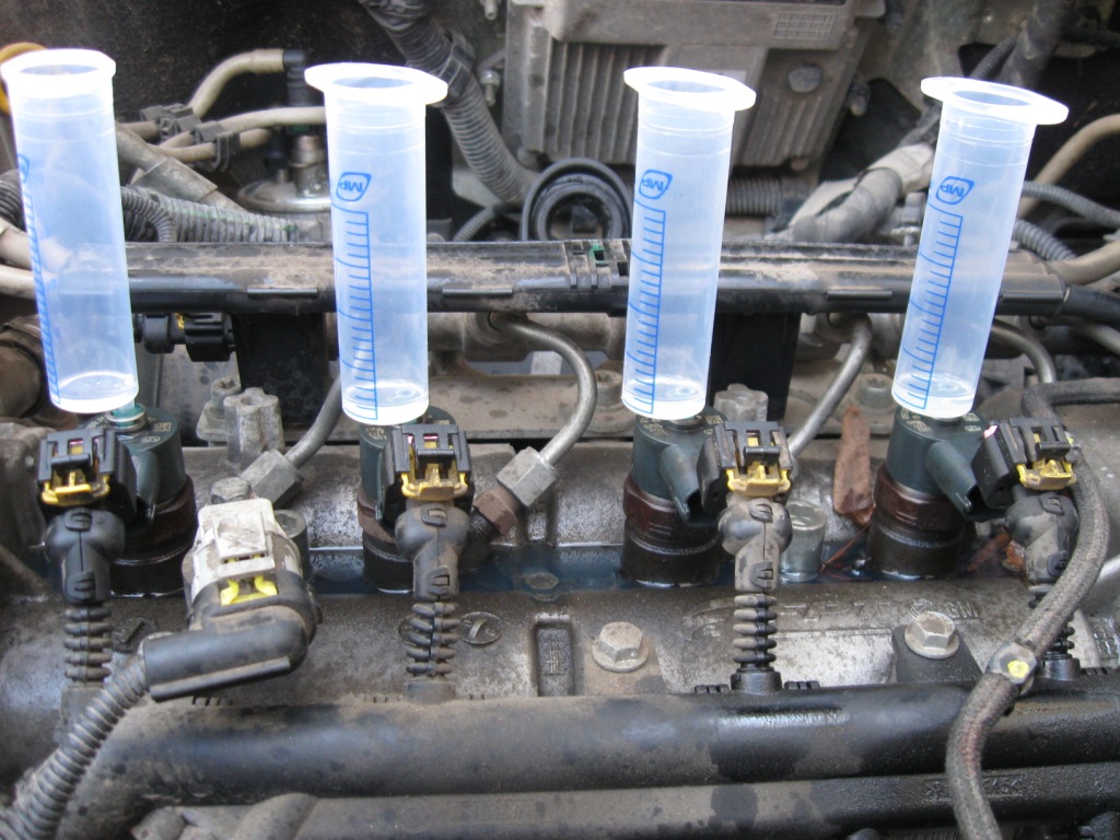 На фото обведен красным квадратом. На улице уже тепло поэтому температура двигателя уже мало влияет на гидроплотность топлива. Можно так-же проделать тест на слив форсунок как на фото. При отключеном питании форсунок после 10 сек. кручения стартера топливо не должно подняться выше штуцерка шприца. При работе у меня набежало то что на фото за 2мин 40сек холостого хода.