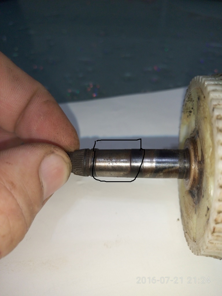 Добрый вечер. Может кто подскажет как можно восстановить вал-шестерню редуктора моторчика дворников? Выработка на валу обведена чёрным. Выработки в корпусе нет.