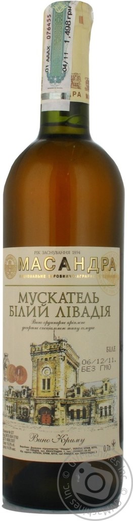 именно с такой этикеткой (Массандра производства Ливадия, Виноградная 1; спирт 16%, сахар 14%; объем 0,7),