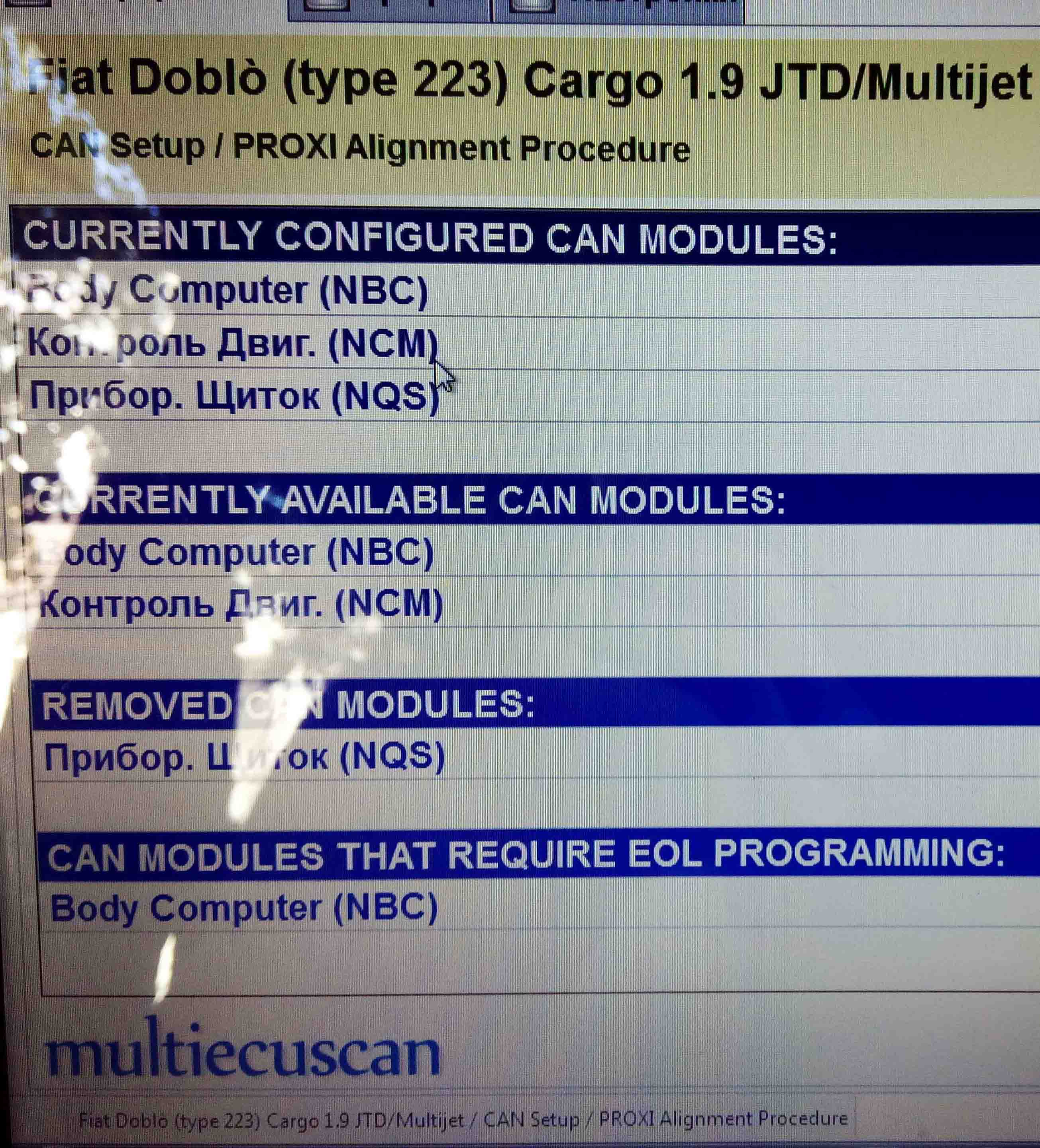 Пробовал через мультискан в разделе кузов/настройки/процедура настройки PROXI, к Body Computer подключилось, а на приборке выдало ошибку
