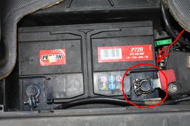 Всем привет! Ребят подскажите пожалуйста как снимаеться клемма с аккумулятора (показана стрелкой на рисунку)