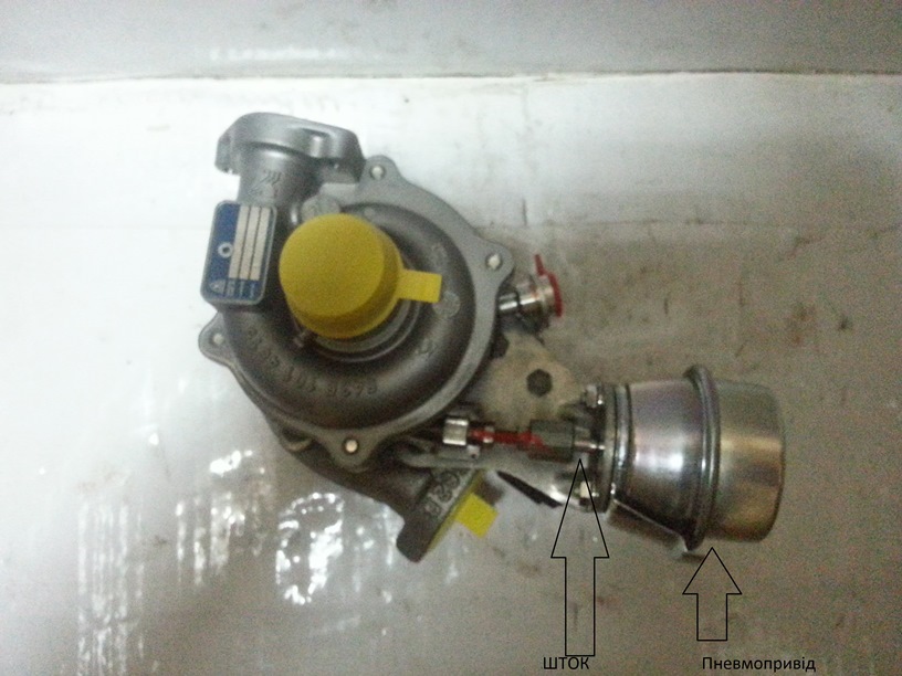 Заїжаеш на яму або підйомник і залазиш під авто знімаеш захист двигуна береш в зуби фонарик дивишся вище каталізатора побачиш турбіну (як на фото вид збоку холодної частини ) уважно дивися шо куди йде як все побудовано там головне тобі побачити шток який рухае клапан скидання тиску в горячій частині. той шток закисае десь при виході з пневмоприводу. Тобі треба налити на той шток ВДшки(показано стрілкою на фото№2(на фото турбіна не від фіоріно но смисл тойже) так шоб вона потекла до місця закисання. можеш набрізгати ВДшки і в місце де ричажок від штока захотить в турбіну.Світи фонарико і дивись уважно там доступ поганий до вдшки треба трубочку подовше щоб дістати туда. через 10 хв. зняти шлангик з ракушки турбіни і подати в нього тиск на пневмопривід можна насосом а краще компрессором 3 атм даванути щоб зрушити той шток і проклацати ним раз 10 потім ставиш шлангик намісце. От і все. 20 хв. роботи і все.