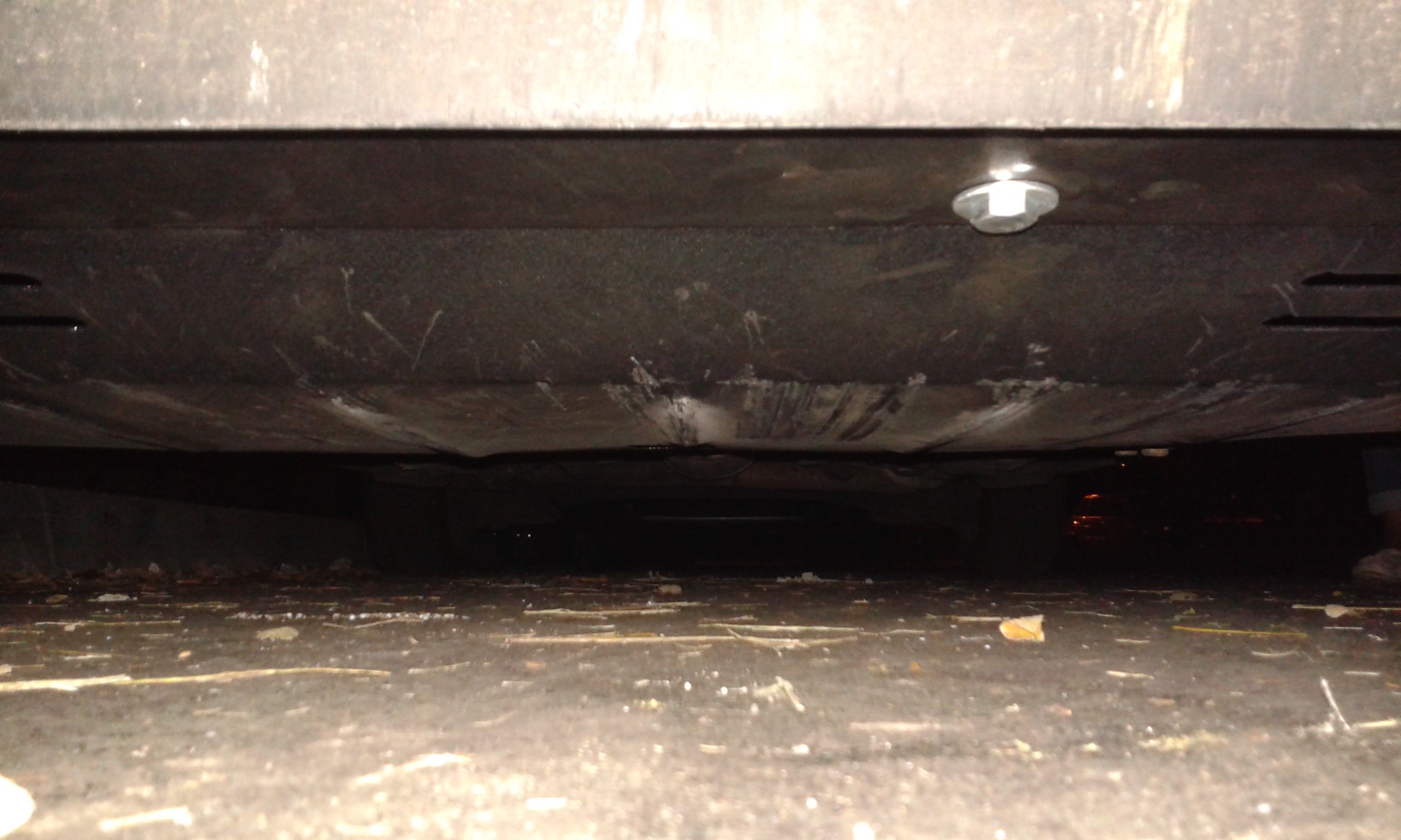 Ось так виглядає захист в моїй машині. Кліренс значно зменшився, на швидкості черпаю навіть незначні вибоїни.. Але це і є робота металевого листа - брати на себе весь удар..