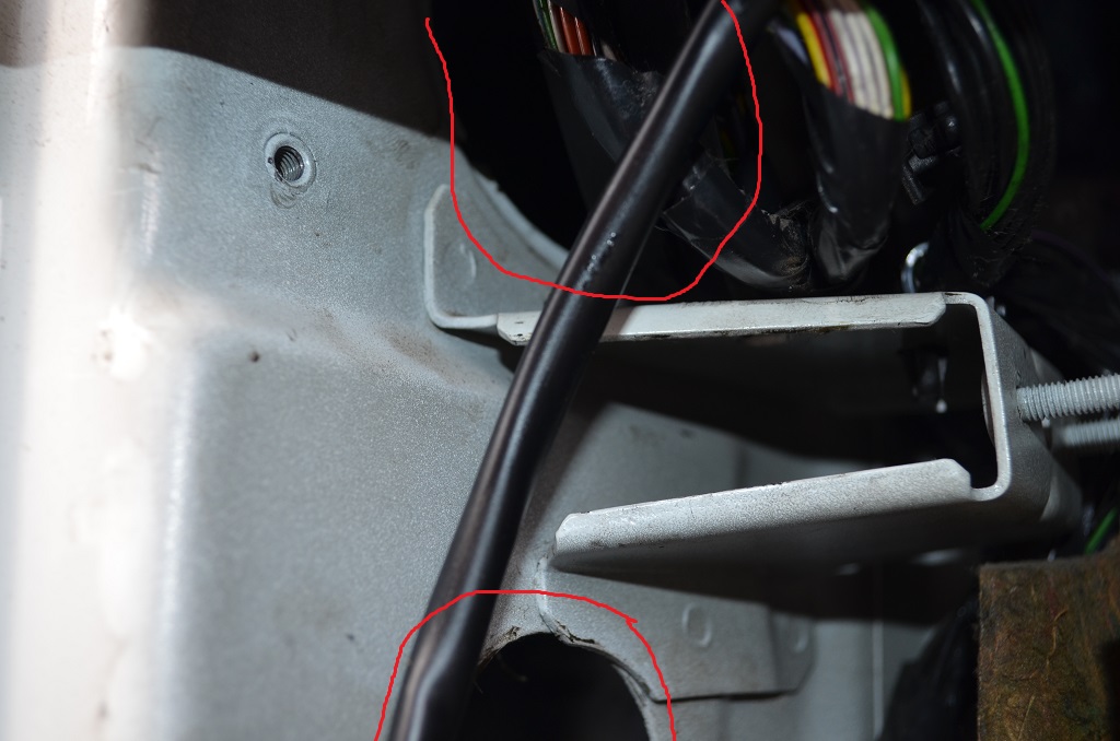 7. Специальным инструментом или плоской отвёрткой снизу снимаем резиновую заглушку с технического отверстия, отводим в сторону сверху в ней провода нужно быть предельно осторожным.
