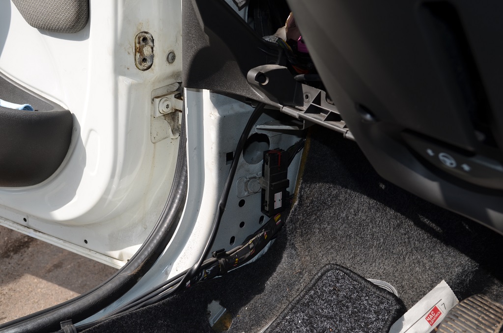 3. Очень аккуратно демонтируем дверку внизу возле руля с левой стороны (если не снять так же можно сломать или поцарапать). В моём Доблике она светло синего цвета.