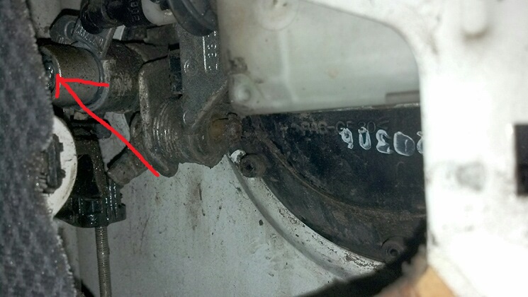 5. Откручиваем и снимаем механизм открытия капота (две гайки) отводим в сторону.