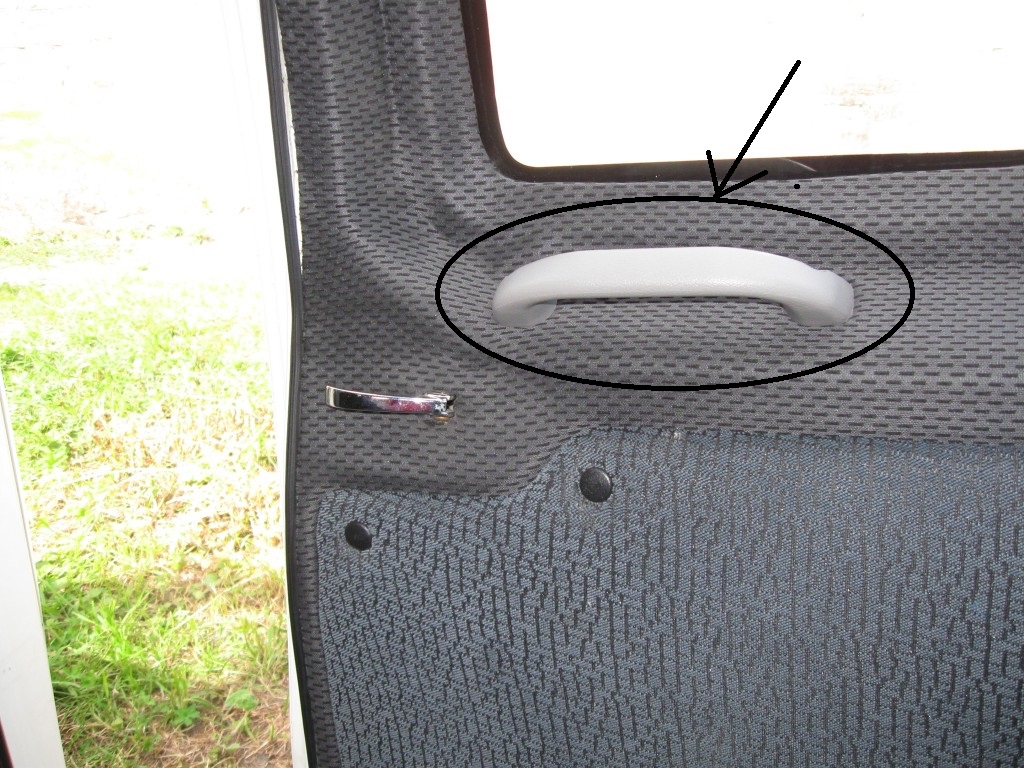 ручка Деу Ланос. Крепёж болт М8 головка обточена под диаметр отверстия в ручке, изнутри шайба и гайка. Надо поизвращаться (длинный пинцет + отвертка с магнитиком), у меня получилось.