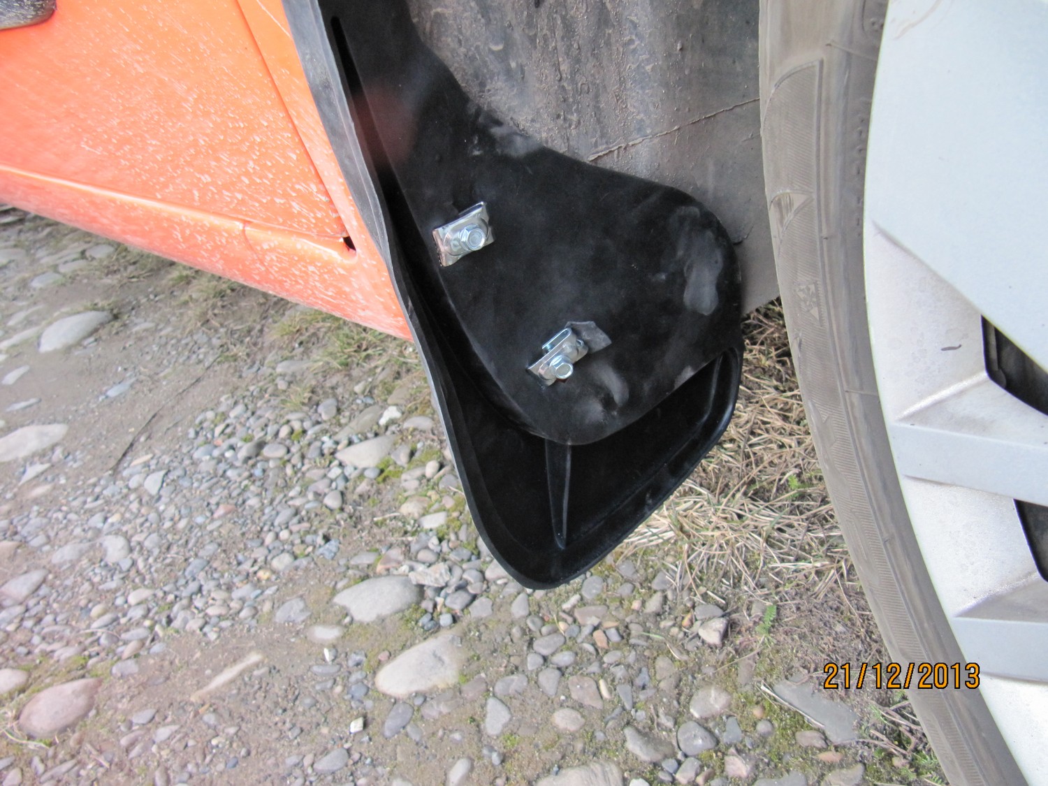 При установке передних брызговиков сразу защитите место касания брызговика с краской. При эксплуатации у меня краска протерлась до метала. (устанавливали брызговики официалы). Сейчас подкрасил и прилипил оракал.