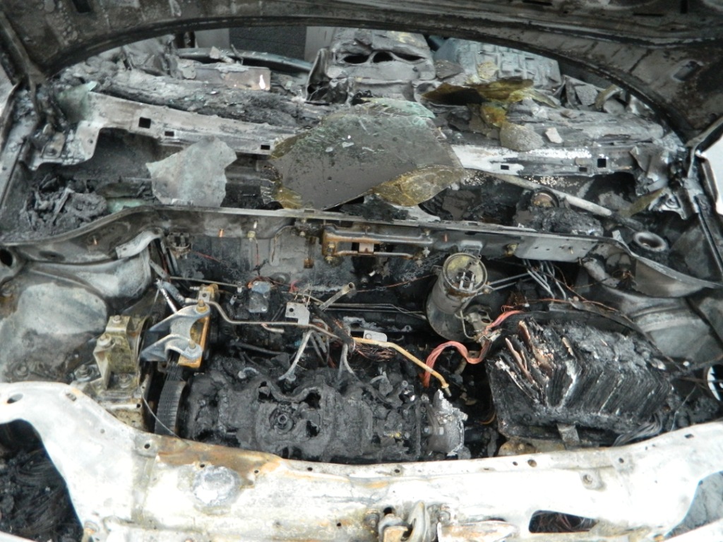 Кузов не деформований, лише в районі капота, бо пожежники відкривали капот ломом, в салоні обгоріла лише обшивка в районі передніх сидінь, і верхня поличка також згоріла, плюс сліди плавленої пластмаси. під капотом все вигоріло крім металевих деталей.