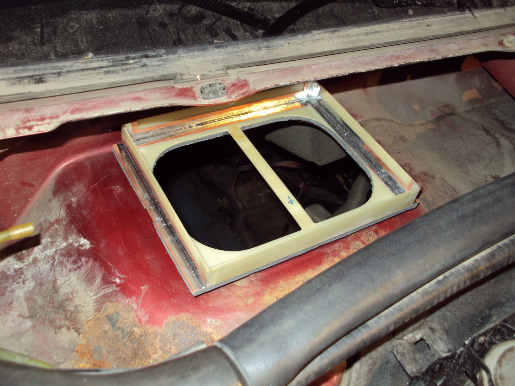 | Вот такой вот вырез, для надёжности выступ был окаймлён металлической лентой и пройден герметиком |