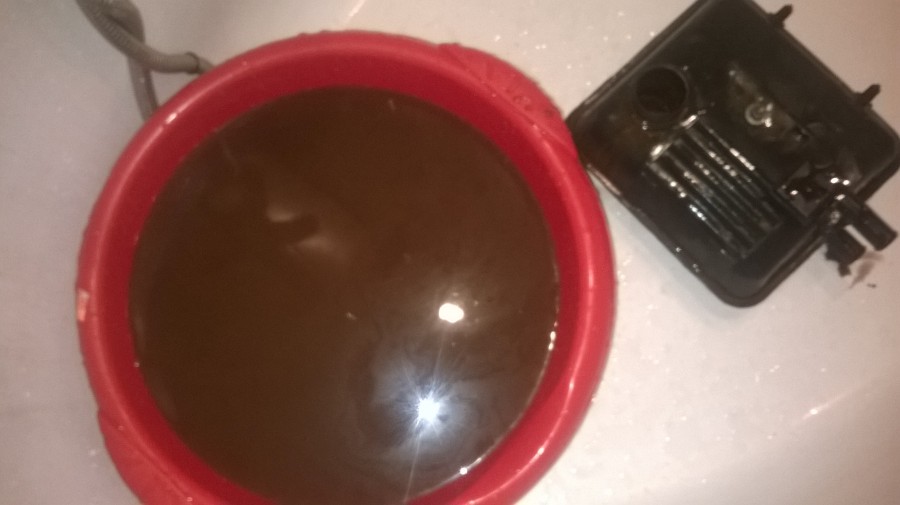 Десь на 20 промивці почала текти більш менш чиста вода і дуже багато відкладів...Патрубки теж струєю води промив,доки не потекла чиста,все поставив на місто.Залив свіжої і чистої води.Вчора знову вдкрив бачок,а там знову коричнева рідина,зовсім не похожа на воду...Буду знов знімати і все ретельно промивати.