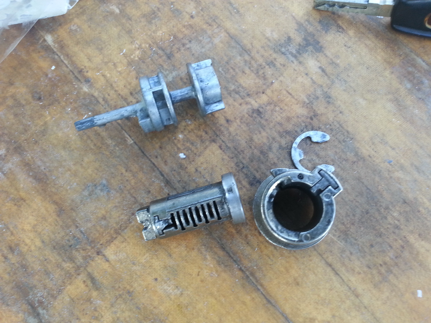 Для того щоб витягнути личинку з сердечника ( як дістати сердечник з плстмасового кожуха я писати не буду там і так все ясно) доведеться зняти стопорне кільце обовязково провернути ключом в положеня парковки(буде не просто якщо сильно зношено але потрібно) і тоді легенько не поспішаючи витягнути притримуючи секрети, щоб вони не повистрелювали, а далі на ваше вподобання залишити один з них на своєму штатному місці.
