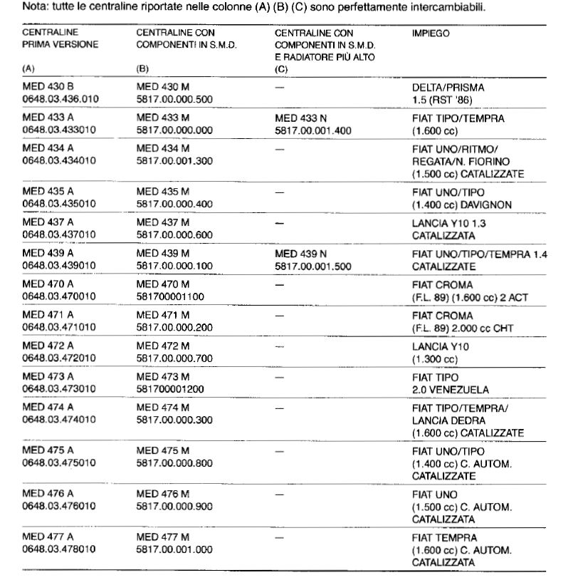 * 1.4 с моновпрыском Mono-Jetronic а также в Fiat Uno 70ie: MED 439 A