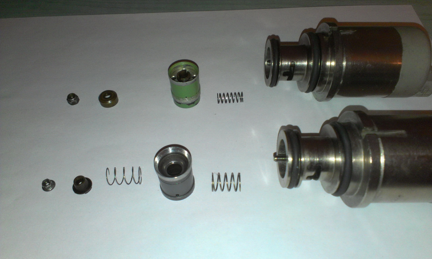 На фото два клапана, внешне абсолютно идентичные: VAE-01 (тот, что с одной пружиной и неубиваемым поршнем. Ставился на более древние вэбберовские авто, не позднее 90 г.в.) и VAE-06 (двухпружинный, снят с типошника 93г.в.).