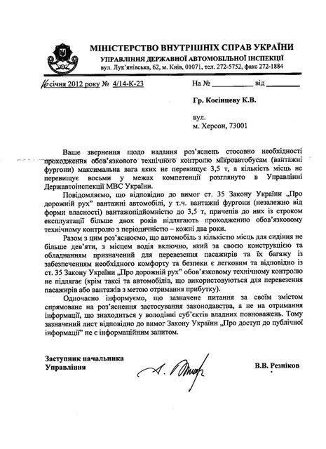 Занавес: вантажний автомобіль (незалежно від форми власності) вантажопідйомністю до 3,5 тонни, право керування яким Ви маєте за категорією В, і строком експлуатації більше двох років має проходити ТО.