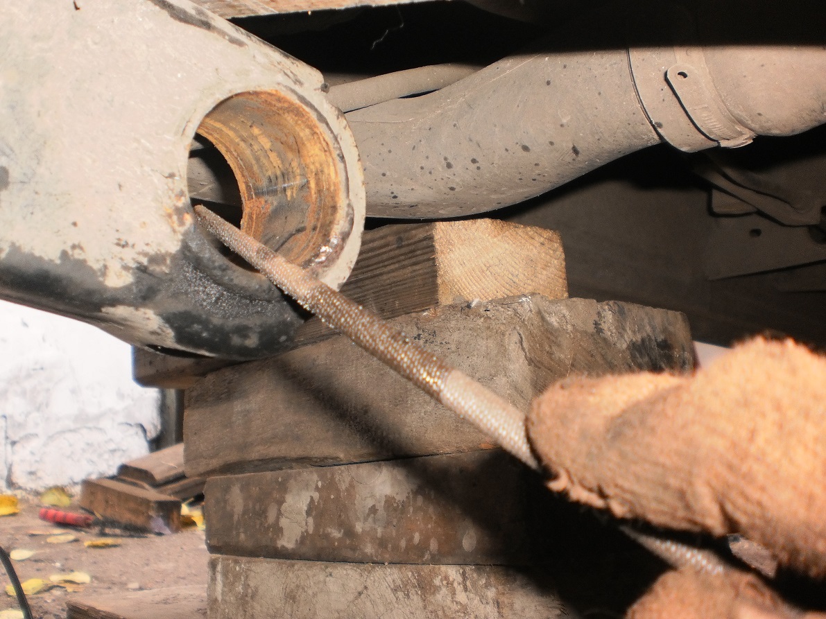 13. Напильником снимаем фаску 2-3 мм. на балке в том месте куда будем пихать с/б. Зачищаем мелкой наждачкой фаску и внутреннюю часть посадочного места, чтобы легко зашел новый с/б.