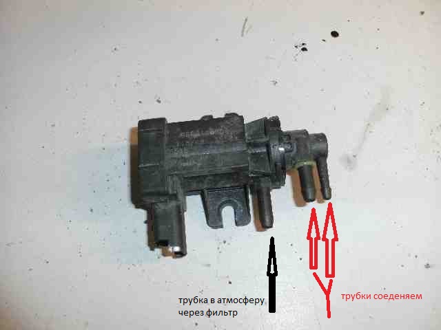 Проветрить можно отсоеденив от него две трубки и подсоеденить эти две трубки между собой используя какуюто соеденительную трубку. После этого пробуем ехать, если тяга появляеться, турбина работает, значит проблемма в клапане управления давления отработанными газами. По простому этот клапан открывает ваккум на ваккумный клапан открытия заслонки турбины.