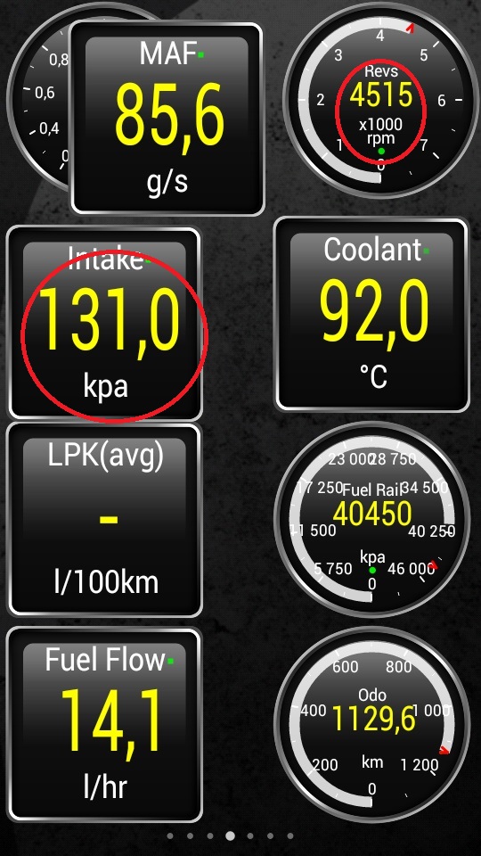 igorya в каких еденицах показано давление на графиках? ведь у меня тоже на стоящей машине при прогазовке до 4000 об/мин давление 135 кПа. Я не пойму почему bogdan68 (Игорь) говорит что нужно отнимать атмосферное давление 100. Ведь на графиках показано показания те что видит ЭБУ с датчика те же 135