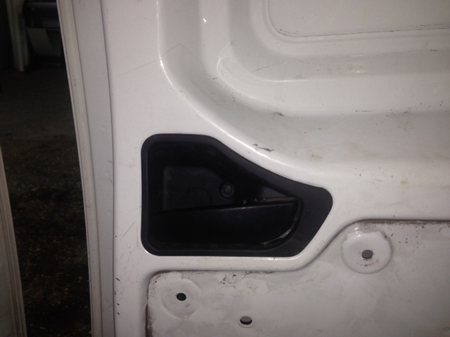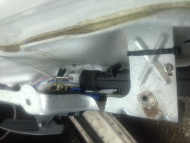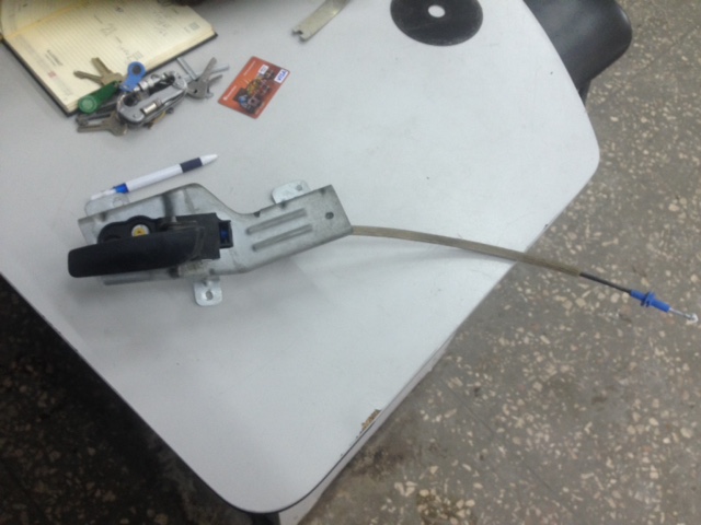 итак, вырезаем лобзиком дырку под нее, отступ от выштамповки во внутрь, примерно 2 мм. дальше все в родные места, в замок тоже просто защелкиваем конец тросика. Не понятно почему она пришла в каком то кронштейне, тк ставится без него.