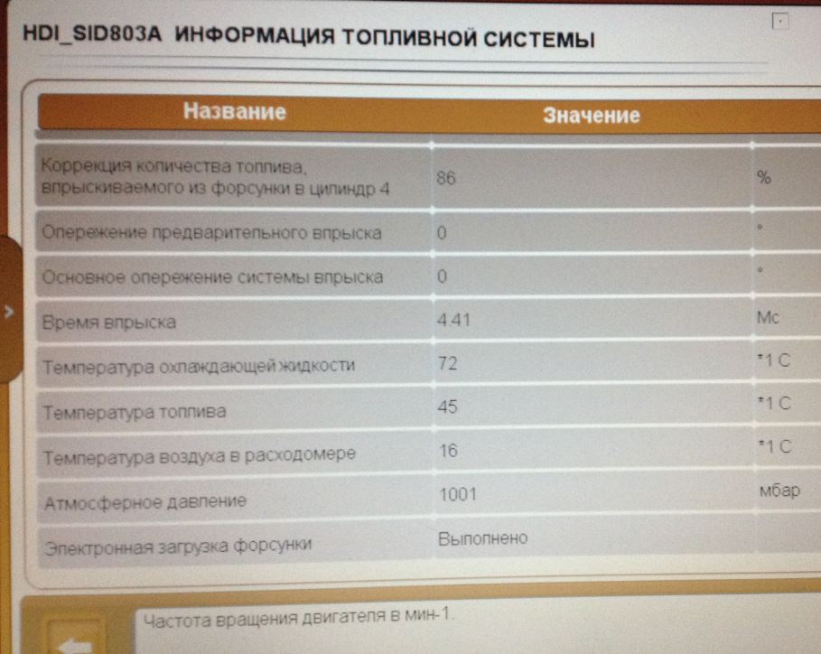 какие цифры должны быть при исправных форсунках?