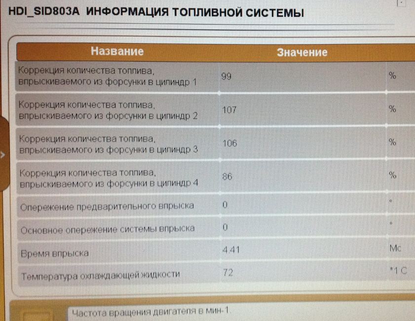 ниже я приложил фото показаний лексии (диагбокс) на холостом ходу на прогретом двигателе. очень интересует "коррекция количества топлива" - там цифра на всех цилиндрах разная.