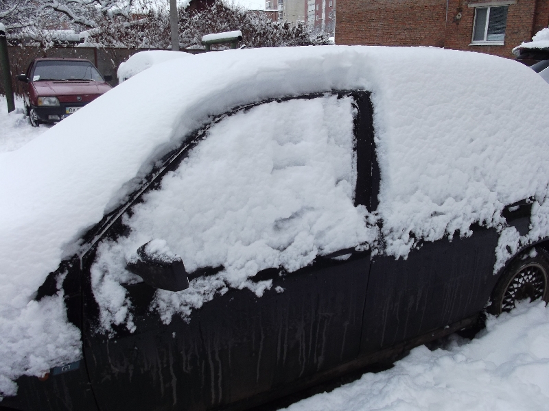 А вчерась в поворот малёха не вписался. Я поворачивать, а машинко не хочет - едет прямо, вот и въехал в сугроб, еле выполз оттуда.