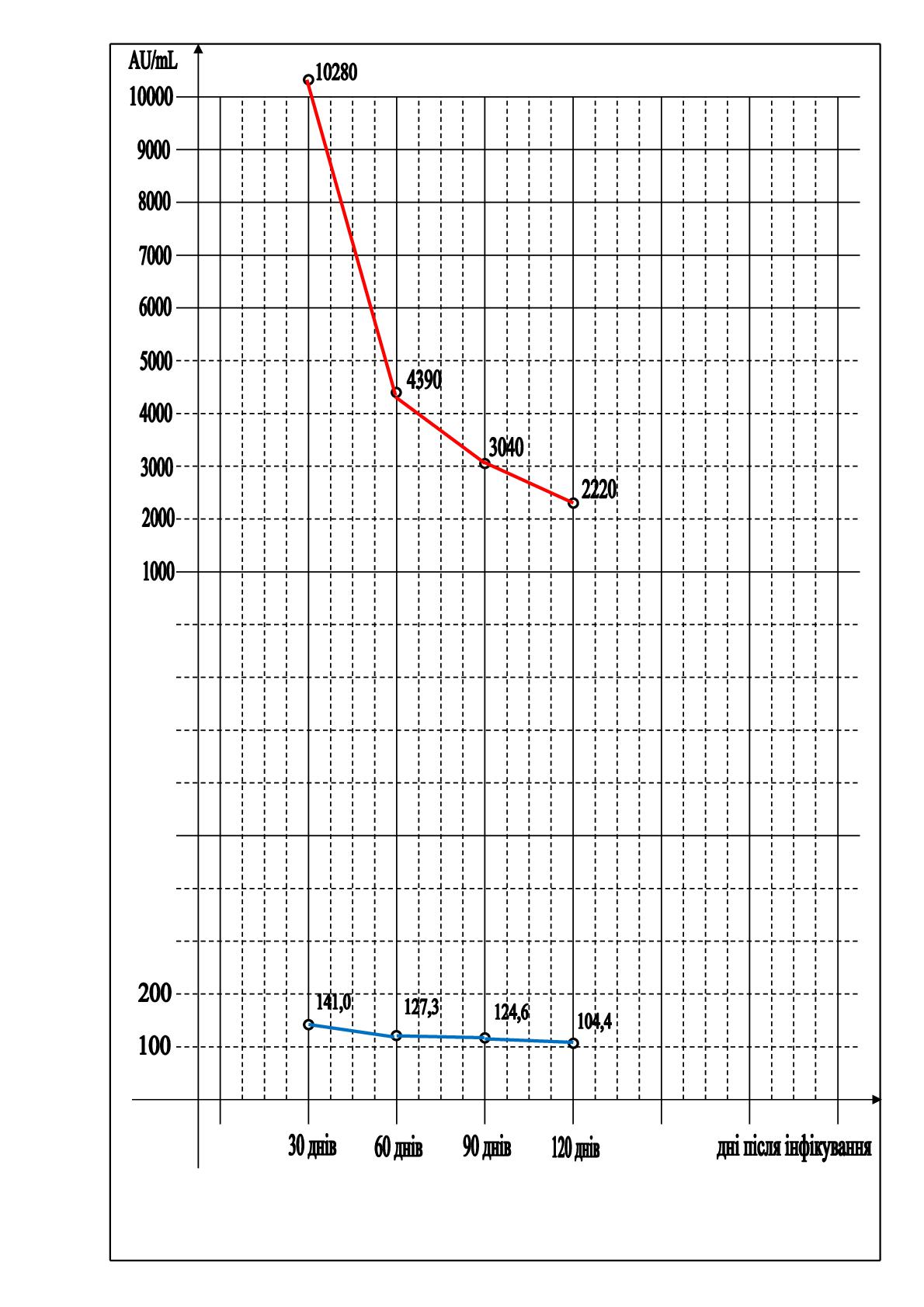 Після одужання вирішили здавати кров на антитіла IgG, через кожні 30 днів. Подивіться на графік, прийміть до уваги не тільки вид графіка, а зверніть увагу й на числа. І ще - 50 та більше - це підтвердження, що ви перенести Ковід; 3950 та більше - наявність сильної віруснейтралізуючої реакції організму. Останні 30 років у нас з дружиною один графік, одне місце роботи, одне харчування.