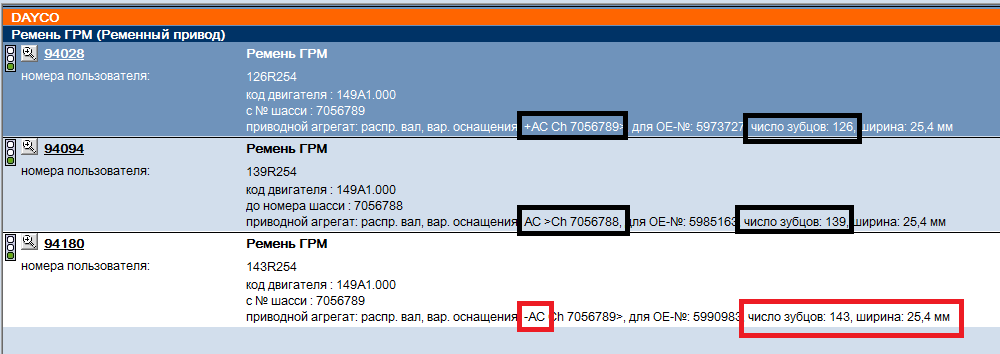 Для данной модели есть три варианта ремня ГРМ с числом зубцов 126,139 и 143.
