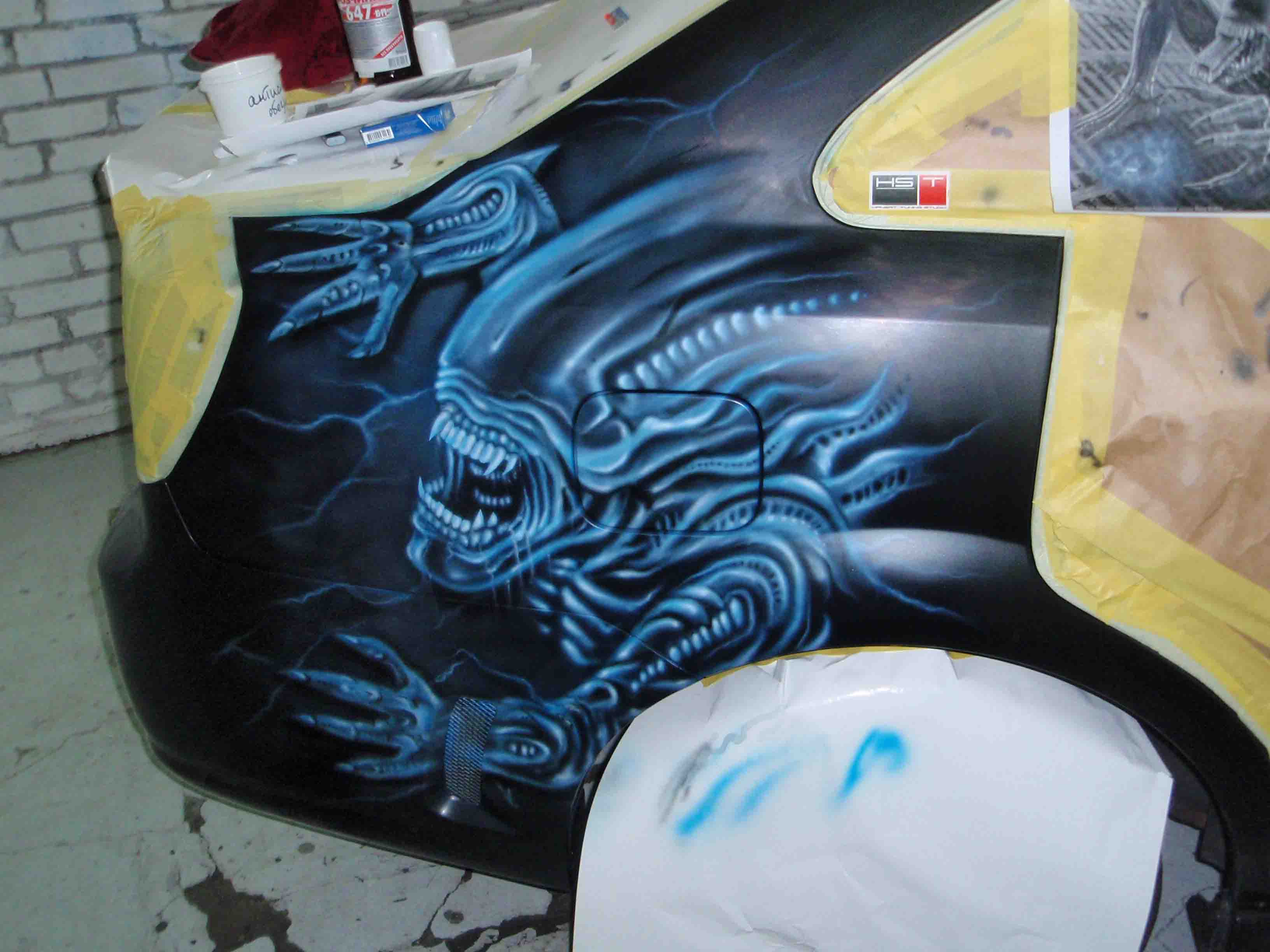 | типок обошолся в 150 у.е - рисовал день с лакировкой - на утро хозяин забрал машину. гитара 100 у.е. рисовалась день с лакировкой