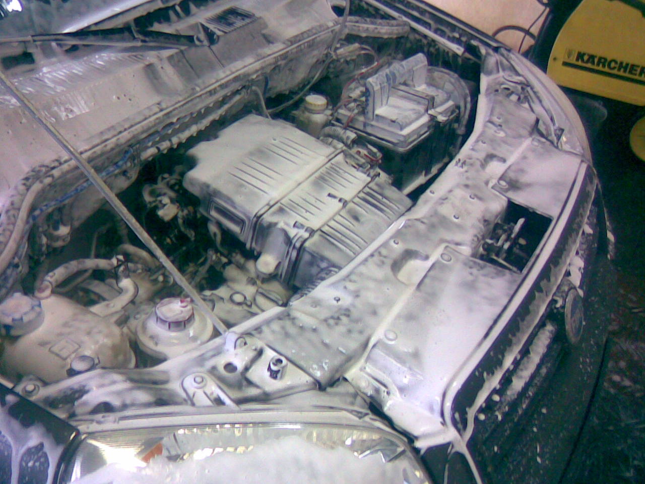Заезжал на мойку делал комплекс и мыл двыготель. Сначала его покрыли пеной, через несколько минут сбыли её и снова пеной. Покуда марафетили салон он откисал, после смыли.