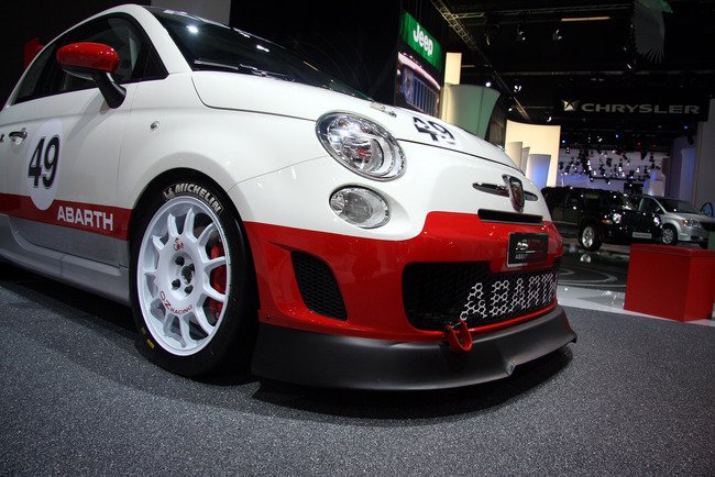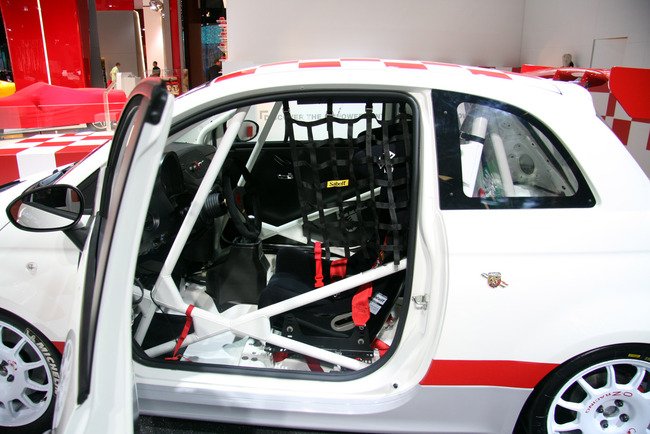 Но Abarth 695 Tributo Ferrari, как выясняется, это не самая быстрая версия Fiat 500. На стенде Abarth стояла еще одна машина, которая называлась 500 Assetto Corse. Ее 1,4-литровый двигатель выдает уже 190 «лошадей»! А еще 500 Assetto Corse имеет минимальный дорожный просвет, очень жесткую подвеску, карбоновый капот, мощный спойлер, на машине отсутствуют какие-либо «навороты» (зато есть каркас безопасности), благодаря чему она получилась на 120 кг легче обычного Fiat 500. В общем, понятно, что перед нами автомобиль, предназначенный для гонок.