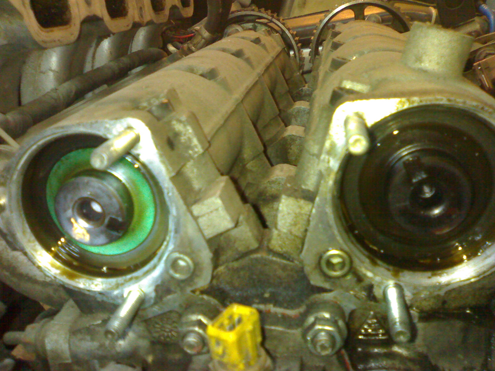 И самое интересное....обнаружил . ВМТ стояла на 4 градуса по отношению к распредвалу впускному, а выпускной смещен примерно на зуб вперед , если смотреть со стороны коробки . ездил так где то пол года ..... более менее нормально но все равно как то не так. Как правильно выставить ?