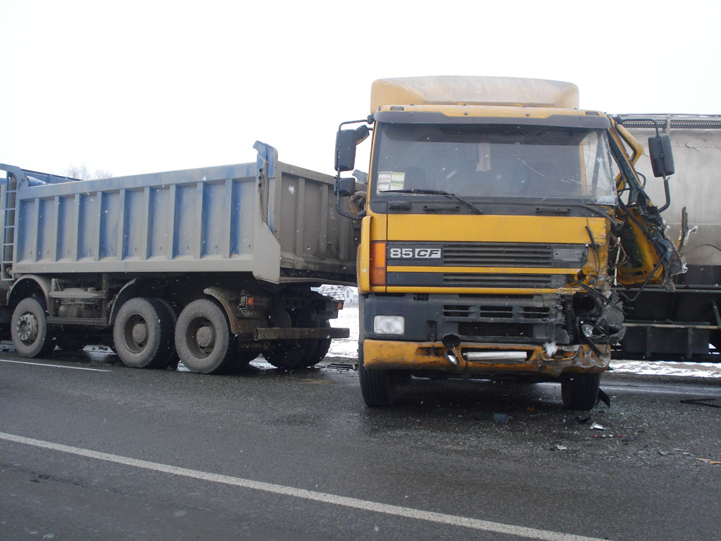 Далее, на харьковской трассе, фура фуру в зад догнала.