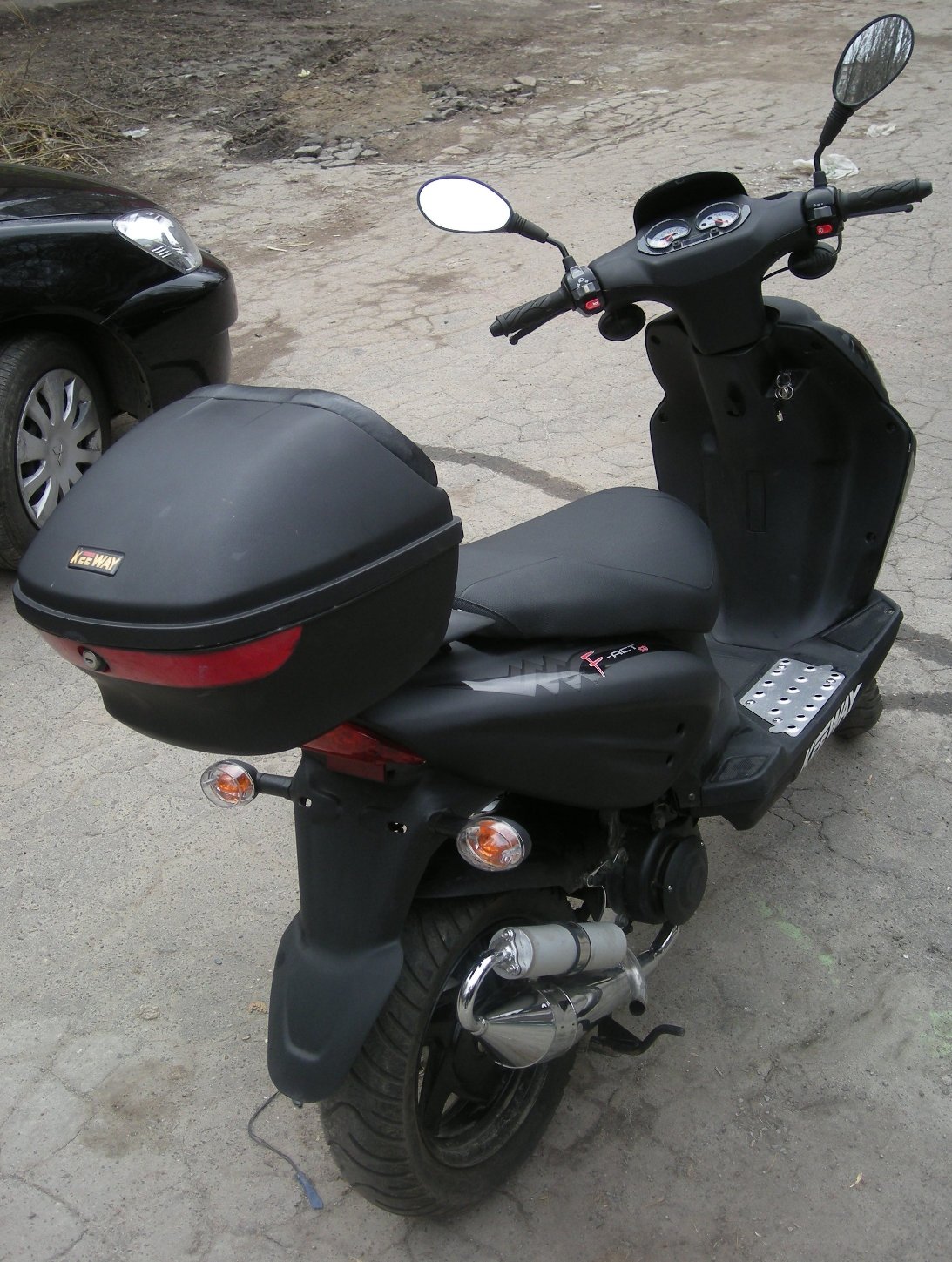 Скутер большого размера. Сам я не маленький. Долго подбирал под себя по размерчику. Сидушка двухместная.