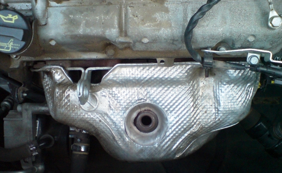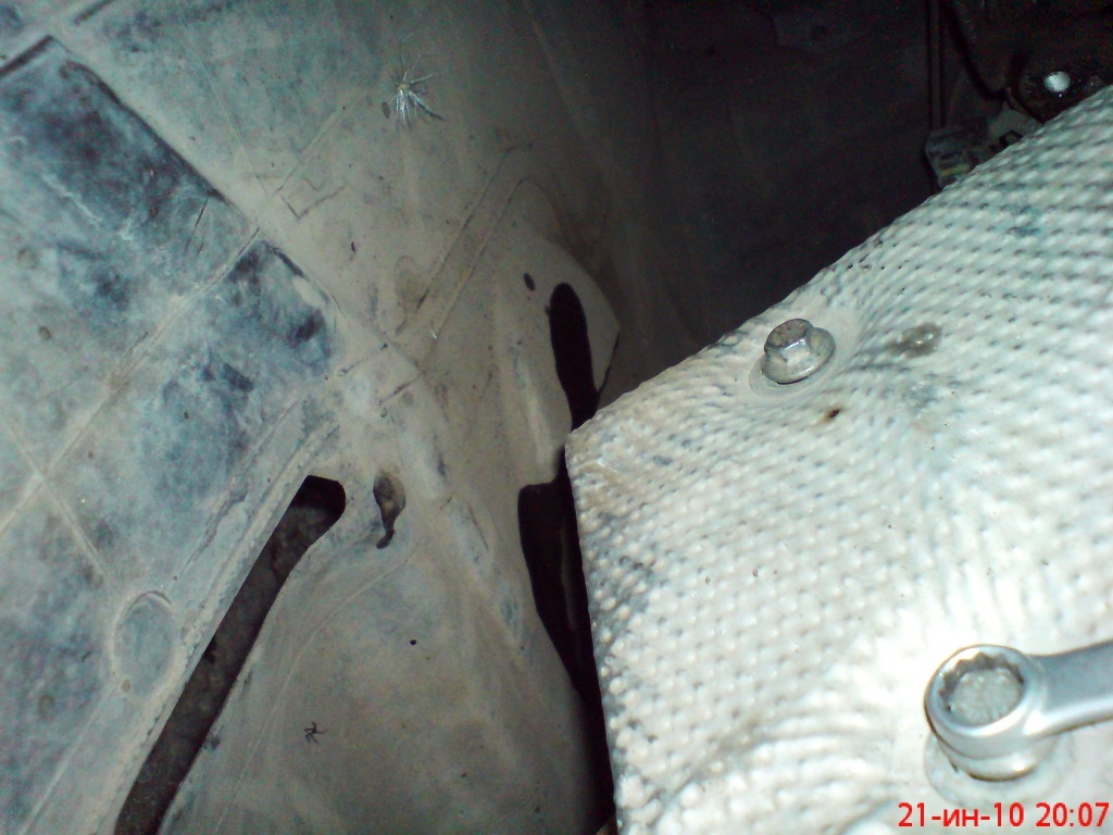 | Берем ключ на 10. И откручиваем 6 болтов. Два сверху, два посередине тепловой рубашки и два снизу. Делал все возле Гаи, ах как было горячо.... :x |