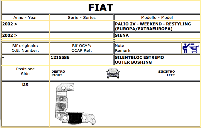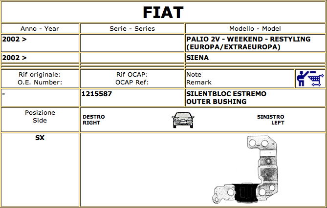 Возникла необходимость поменять сайлентблоки на Fiat Siena. Мастер сказал, что по хорошему надо менять передние и задние сайлентблоки на передней подвеске. Полез в EPER и не могу открыть картинку с деталями где нарисованы сайленты. Подскажите кто знает коды деталей, т.е.